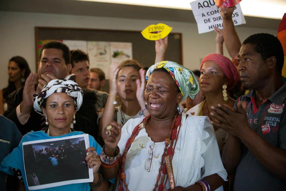 Comunidade negra em luto: representantes de religiões afro-brasileiras choram com a eleição de Marco Feliciano para presidente da Comissão de Direitos Humanos e Minorias. Foto de Zeca Ribeiro.