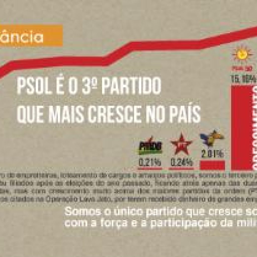 De outubro de 2014 até abril deste ano, o PSOL saltou de 91.326 para 104.845 filiados, tendo um crescimento de 14,80%. Isso coloca o partido no terceiro lugar entre as legendas que mais cresceram após as eleições de outubro do ano passado, ficando atrás somente dos dois partidos mais novos, no caso o Solidariedade e […]